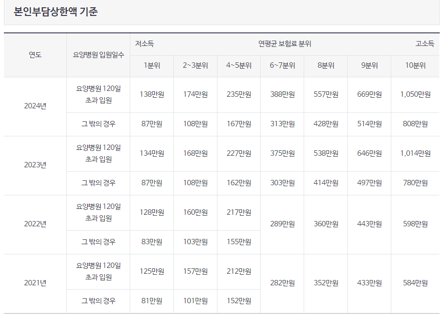 본인부담상한액 기준은 아래ㅣ를 참고해 주세요!